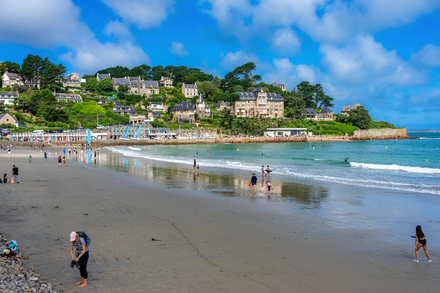 Anse St-Guirec, la plage principale de Ploumanac'h, est un petit demi-cercle abrité de sable doux. Pour les enfants en particulier, c'est un endroit magique, avec des châteaux de sable à construire, des piscines rocheuses à explorer, et beaucoup de baignades savoureuses.