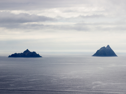 Alors qu’elle émerge discrètement de l’océan, la bien-nommée Skellig Michael ressemble étrangement à ces terres que l’Homme n’a jamais fréquenté. Ce gros rocher isolé en pleine mer, exposé aux vents et aux pluies venus de l’Atlantique, est le genre d’endroit sur lequel on imagine mal vivre. Il n’est pas étonnant qu’elle ait été choisie comme lieu de tournage de Star Wars.