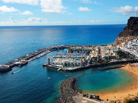 Port de plaisance de luxe et de pêche, deux mondes se côtoient à Puerto de Mogán. Ses 217 postes d’amarrage accueillent des bateaux mesurant jusqu’à 40 mètres de long, avec une profondeur fluctuant entre deux mètres à marée basse et sept mètres à marée haute. C’est une destination touristique idéale, avec de splendides plages, comme Playa de los Amadores, et une multitude d’activités nautiques.