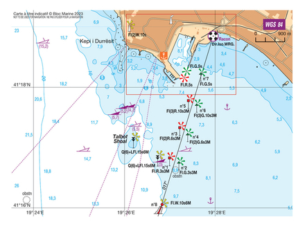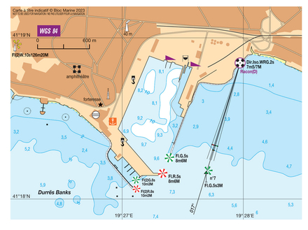 Coordonnées entrée du port : latitude : 41°18,204'N / longitude : 19°27,366'E