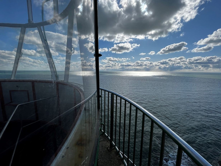 En mer, son éclat blanc toutes les 10 secondes guide les navires à 29 miles à la ronde. Depuis la terre son faisceau anime les nuits du joli port de Barfleur à quelques encablures dans son Sud, et on peut même le voir balayer le ciel depuis St Vaast La Hougue, une douzaine de kilomètres plus bas sur la côte. Il faut dire qu’il est imposant avec ses 75 mètres de haut qui font de lui le deuxième plus haut phare de France derrière celui de l’île Vierge (82.5m).