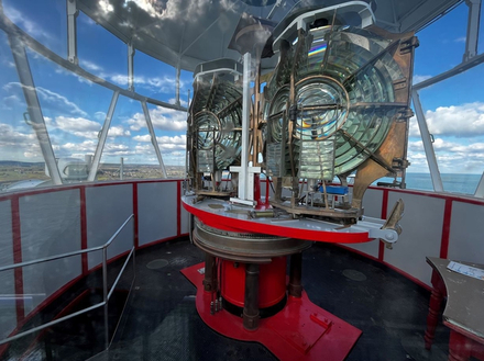 L’escalier hélicoïdal est une œuvre d’art à lui tout seul. Mais l’architecte n’a pas eu peur d’user de moults symboles dans son dessin. 365 marches permettent d’accéder à son sommet, une par jour de l’année. Autres références calendaires usitées par Monsieur de la Rue, 52 fenêtres éclairent son intérieur, et 12 paliers intermédiaires permettent de se reposer lors de l’ascension. Cinq années furent nécessaires pour en achever la construction et allumer enfin la lumière, dont la lentille originale était due à l’invention d’Augustin Fresnel, un Normand lui aussi, même si natif de l’Eure. Après avoir été électrifié en 1893 et automatisé, comme tous les phares français, en1984, le phare de Gatteville est aujourd’hui un monument historique. Contre la modique somme de trois euros par adulte, on peut le visiter, sauf les jours de grand vent. Les marches en granite autour du cylindre central sont numérotées toutes les cinquantaines et rythment la vitesse ou la lenteur de votre progression. L’arrivée au sommet est récompensée par une première passerelle circulaire en pierre. Une volée de marches métalliques mène à la hauteur de l’optique : sujets au vertige, s’abstenir. Mais dans tous les cas, la vue à 360 degrés sur la Manche et le Val de Saire depuis ces deux promontoires sont à couper le souffle.