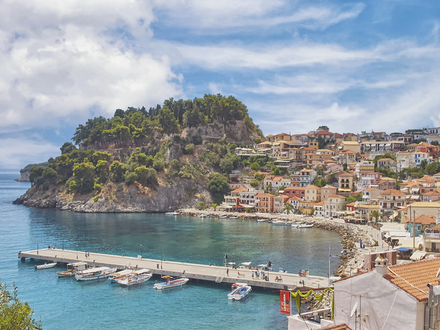 Coordonnées entrée du port : latitude : 38°57,470'N / longitude : 20°45,350'E