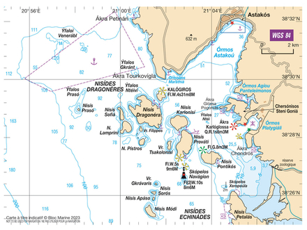 Zone pour les navires désirant aller au port d’Astakos. Demander l’autorisation 24 h à l’avance.