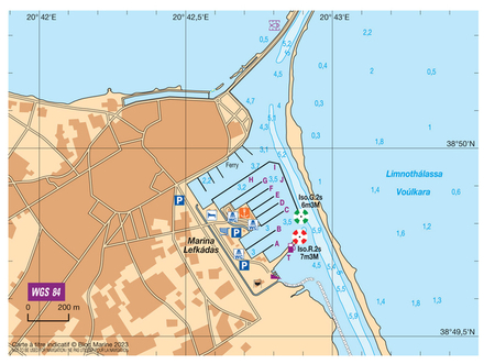 Coordonnées entrée du port : latitude : 38°49,790'N / longitude : 20°42,90'E