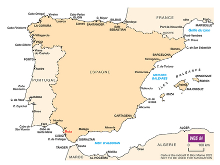 A 1,3 M à l’E, la base navale de Rota (36°36,6' N - 6°19,4' W)