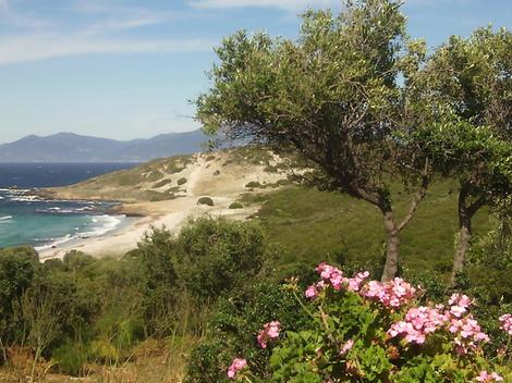 La plage de Macinaggio, directement accessible au nord du port (570 places, équipements et services), marque le départ du sentier. Sur sa partie orientale, jusqu'à l'île de la Giraglia et ses deux hameaux sentinelles Barcaggio et Tollare, il serpente en douceur le long de plages de sable fin, dans les dunes et le maquis bas. La grande plage de Tamarone offre une première halte. Puis les îles Finocchiarola apparaissent : la réserve naturelle est le repaire des goélands d'Audoin (principal site de nidification de l'espèce), cormorans huppés et balbuzards pêcheurs. Pour préserver ces lieux de reproduction et de migration, le débarquement sur l'archipel des Finocchiarola est interdit du 1er mars au 31 août et le mouillage est impossible toute l’année dans un rayon de 200 mètres autour des îles. Poursuivez ensuite votre balade jusqu'à la rade de Santa Maria : sa chapelle est l'une des dernières à double abside et sa tour génoise, en partie effondrée (mais toujours les pieds dans l'eau), classée monument historique, est l'une des quinze sentinelles de schiste encore debout le long des côtes capcorsines (sur la trentaine construite à partir du XVIe siècle). Elle complète un décor paradisiaque : blancheur du sable, eaux turquoise qui viennent lécher le vestige et au large l'île toscane de Capraia. Dans la continuité, les plages de sable de Genovese (et ses vaches débonnaires) et de la cala Francese invitent, elles aussi, à la pause baignade ou farniente. En poursuivant jusqu'à la pointe et la tour d'Agnello, la côte devient plus découpée, davantage travaillée par les éléments. Enfin, point d'arrivée du premier itinéraire, la marine de Barcaggio, à l'extrême nord du cap. Face à elle, l'imposante île de la Giraglia, surmontée de son phare et de sa tour génoise, défie les éléments.