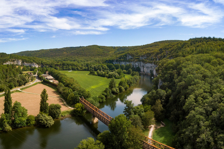 Depuis Cahors, dominée par son pont Valentré, on file vers Bouziès et Saint-Cirq-Lapopie, accrochés à leurs falaises comme des nids d’aigle. Les paysages alternent entre gorges profondes, prairies et vergers.