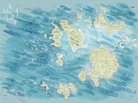 St Mary's, est la plus grande de ses îles et le port de Hugh Town la plaque tournante de la vie de l’archipel. S’y croisent, en s’ignorant parfois, bateaux de pêche exploitant les eaux poissonneuses environnantes, ferries commerciaux ou d’ornithologues amateurs attirés par les quatre cents espèces d’oiseaux répertoriées sur ces îles, dont plusieurs extrêmement rares, et voiliers portés par les vents de l'Atlantique vers cet archipel enchanteur. La végétation anglaise est luxuriante et verte, avec des fleurs qui semblent sortir de chaque fissure des murs ou de la roche. Dans les prés, les vaches paissent paisiblement avec une vue spectaculaire sur l’océan. Sur les îles Scilly, tout paraît plus austère. Le paysage est constitué de roches, d'herbes, de buissons et parfois d'arbres, mais ces derniers sont marqués par le vent qui souffle souvent en tempête. Le littoral est parsemé d'îles, de rochers submersibles, de bancs de sable blanc, de baies et détroits qui exigent une navigation prudente et précise.
