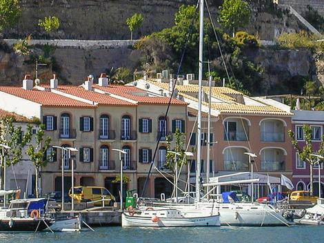 L’arrivée par Port Mahon est aussi appréciée par les plaisanciers que par les professionnels de la mer qui parlent d’un site hors du commun. Un port, longtemps convoité par les pirates qui sillonnaient la Méditerranée, protégé par d’imposants promontoires rocheux. Sur ces roches et sur les îles qui parsèment le port naturel, on découvre aussitôt des fortifications tournées vers le large : celle d’Isabel II mais aussi les doubles murailles du lazaret, l’établissement qui accueillait les passagers venus de ports touchés par la peste et mis en quarantaine. Ces pierres solides laissent rapidement la place aux luxueuses villas parées d’immenses baies vitrées. Tout pour profiter du soleil généreux des Baléares. Mais le ciel limpide ne fait pas longtemps oublier les vents coriaces et capricieux de l’île des tempêtes. Mahon, le plus grand port naturel de Méditerranée, est un havre de paix apprécié des marins. Les quais accueillent tout au long de l’année des petits esquifs traditionnels aux voiles latines, des ménorquins, solides embarcations à moteur pensées pour les Baléares, de luxueux yachts mais aussi des ferries, des cargos et des navires de guerre.