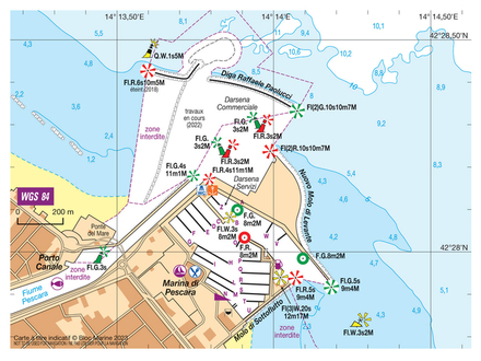 - Au nord, marina protégé par Diga Raffaele Paolucci avec balises lumineuses aux 2 extrémités.