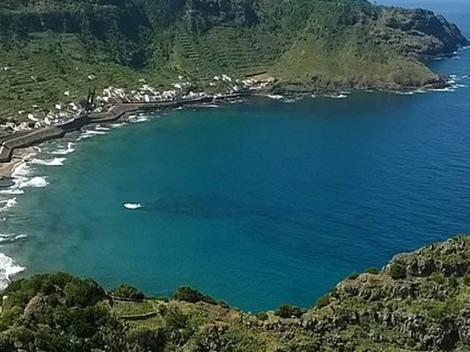 "Surgissant des flots, le mont Pico s'élève majestueusement. Sa cime enneigée joue à cache-cache avec la brume, évoquant l'iconique Fuji-Yama. Culminant à plus de 2350 mètres, le plus haut sommet du Portugal est enveloppé d'épais nuages que le vent balaie. Le ferry, qui traverse le bras de mer reliant l'île de Faial à celle de Pico, tangue sous la force de la houle. Du pont supérieur, le volcan semble à portée de main. Soudain, le soleil surgit. Les pentes du mont Pico se colorent en un instant de toutes les nuances de vert laissant apercevoir des coulées de lave noire, autrefois appelées mistérios par les Açoréens, résignés face aux colères imprévisibles de leurs montagnes de feu.