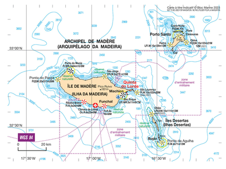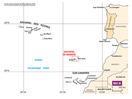Coordonnées entrée du port : latitude : 32°44,45'N / longitude : 16°42,83'W