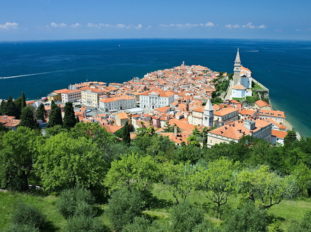 Entièrement classée monument historique, l’ancienne ville portuaire fortifiée du Moyen-Âge a en effet conservé son architecture première influences vénitiennes. Ruelles étroites entrelacées, maisonnettes dominant la mer collées les unes aux autres à flanc de colline, jolies petites places et édifices religieux, confèrent à Piran un caractère typiquement méditerranéen. L’église Saint-Georges, qui doit son nom au protecteur de la ville, érigée sur une colline, offre une vue imprenable sur Piran et ses environs, qui s’étendent jusqu’aux côtes croate et italienne. Outre ses monuments et son architecture, Piran, station balnéaire importante vivant principalement du tourisme, séduit également pour ses infrastructures touristiques et ses attractions culturelles, comme le musée aquatique Sergej Mašera, et les nombreuses galeries d’art qui ont aussi contribué à la renommée de la ville.