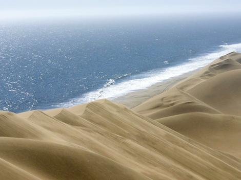 Dans le désert du Namib, où se trouvent les plus hautes dunes de sable au monde, existe un lieu dans lequel le désert et l’océan se rencontrent et composent ensemble un décor digne des plus somptueux paysages. Situé dans le parc Namib-Naukluft, il vous faudra réserver un 4x4 et être accompagné d’un guide pour vous y rendre. Ce site RAMSAR ou autrement dit « zone humide d’importance internationale », est appelé Sandwich Harbour, car elle est enclavée entre l’Océan Atlantique d’un côté et les dunes du Namib de l’autre. Là-bas vous ne trouverez pas d'habitations humaines, Sandwich Harbour est un lagon où seule la nature est souveraine.