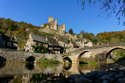Dans cette boucle sauvage de l’Aveyron, Belcastel apparaît comme figé dans le temps. Avec son château féodal restauré au XXe siècle par l’architecte Fernand Pouillon, son vieux pont de pierre enjambant la rivière et ses maisons de schiste à flanc de colline, le village compose une carte postale vivante du Moyen Âge. Chaque recoin de ses ruelles pavées mérite qu’on s’y attarde. Belcastel possède également plusieurs édifices religieux, dont une église remarquable abritant une œuvre contemporaine de Michel Batlle. Ici, tout invite à ralentir, à observer, à se laisser surprendre par les détails d’un linteau sculpté ou l’harmonie entre les constructions et la nature. Une étape paisible, presque hors du monde.