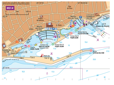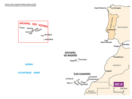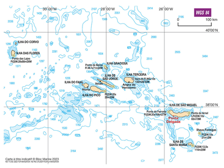 Coordonnées entrée du port : latitude : 37°44,24'N / longitude : 25°39,61'W
