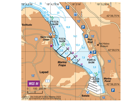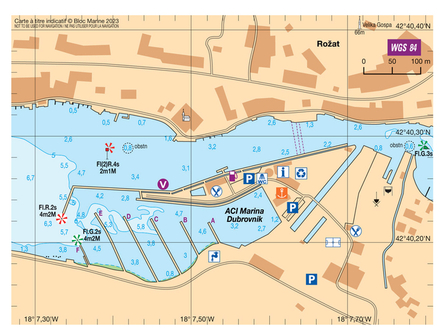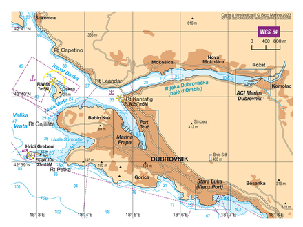 Coordonnées entrée du port : latitude 42°40,064'N / longitude : 18°4,085'E
