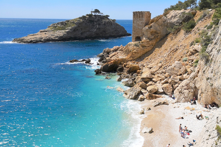 Accessible après une marche d’environ une heure par le sentier escarpé des Douaniers, cette calanque sauvage se mérite. Le chemin serpente au milieu des pins et des falaises avant de déboucher sur une plage de galets bordée d’eaux turquoise éclatantes. Les plaisanciers apprécient la quiétude du mouillage, protégé des vents dominants, et les randonneurs trouvent dans ce décor une récompense à leurs efforts. L’endroit attire aussi les plongeurs libres, qui explorent ses fonds riches en poissons méditerranéens et en herbiers marins. À marée calme, l’eau devient si limpide qu’on aperçoit chaque détail des galets au fond. Peu connue du grand public, l’Erevine reste un véritable sanctuaire naturel, idéal pour ceux qui recherchent la Côte d’Azur la plus préservée.
