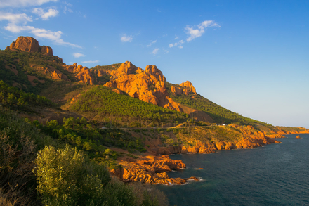 Les reliefs rouges du massif de l’Esterel forment l’un des paysages les plus spectaculaires de la Riviera. Sculptées par le vent et la mer, ces falaises volcaniques plongent dans une Méditerranée aux reflets bleu profond, créant un contraste de couleurs saisissant. La corniche d’Or, longue de 36 kilomètres entre Saint-Raphaël et Théoule-sur-Mer, offre aux visiteurs un itinéraire où chaque virage dévoile une nouvelle crique confidentielle. Certaines anses, accessibles uniquement à pied ou par la mer, garantissent une baignade presque exclusive. L’île des Vieilles, avec sa petite plage nichée entre deux falaises, séduit autant les amateurs de snorkeling que les photographes en quête de panoramas. La plongée y est remarquable, avec une visibilité souvent excellente et des reliefs sous-marins spectaculaires. Que l’on soit en voiture, en randonnée ou en bateau, l’Esterel reste un incontournable pour ceux qui cherchent des paysages puissants et sauvages.