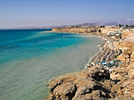 Entre le désert de la péninsule du Sinaï et la mer Rouge, cette station balnéaire est connue pour ses eaux dont la température avoisine les 30°C en moyenne, ce qui en fait l'une des plages les plus chaudes du monde. Entre ses eaux claires, ses superbes plages et ses récifs coralliens, c’est un lieu particulièrement apprécié, notamment des plongeurs.