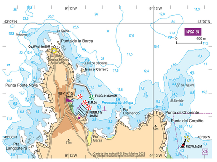 Coordonnées entrée du port : latitude : 43°06,331'N / longitude : 09°12,748'W