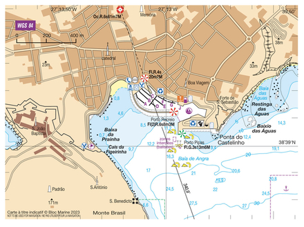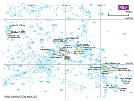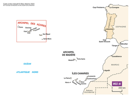 Coordonnées entrée du port : latitude : 38°39,10'N / longitude : 27°12,95'W