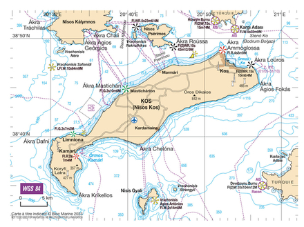Passe entre Nísos Kos et la côte turque large de 7 M et profonde.