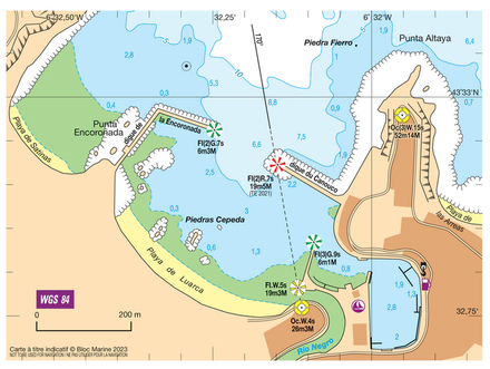 Coordonnées entrée du port : latitude : 43°32,95'N / longitude : 06°32,20'W
