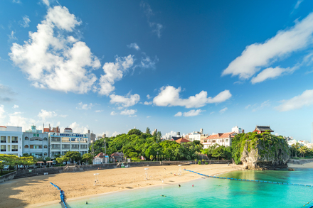Accroché à une falaise dominant la mer de Chine, le sanctuaire Naminoue-gu, fondé au XVe siècle, est l’un des symboles de Naha. Avec ses couleurs rouge et or flamboyantes, il attire aussi bien les pèlerins shintoïstes que les voyageurs curieux. Le lieu dégage une atmosphère paisible, idéale pour s’imprégner de la spiritualité japonaise tout en profitant d’un panorama spectaculaire. Après la visite, il suffit de descendre quelques marches pour accéder directement à la plage et s’offrir un bain rafraîchissant.