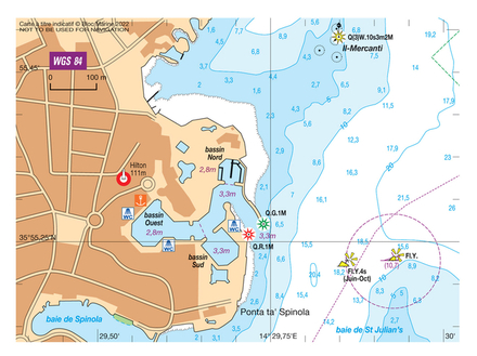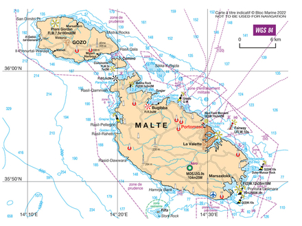 Coordonnées entrée du port : latitude : 35°55,263'N / longitude : 14°29,729'E
