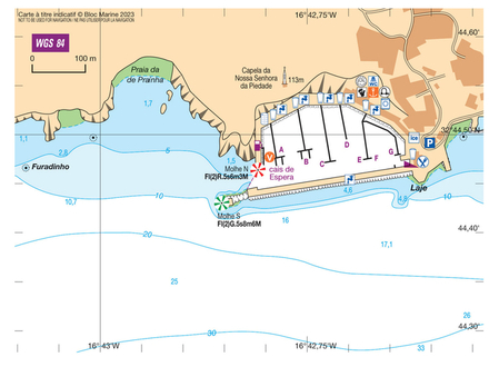 Coordonnées entrée du port : latitude : 32°44,45'N / longitude : 16°42,83'W