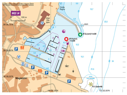 Coordonnées entrée du port : latitude : 38°08,657'N / longitude : 13°22,364'E