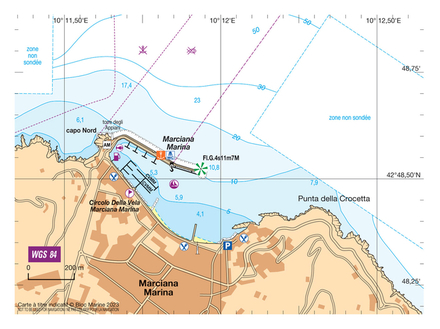 Coordonnées entrée du port : latitude : 42°48,500'N / longitude : 10°12,000'E