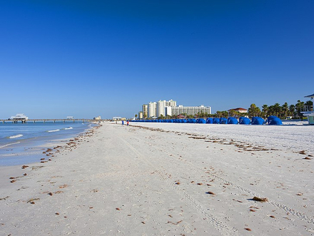 Clearwater Beach est une plage très populaire sur la côte Ouest de la Floride. Réputée pour son sable blanc et ses eaux turquoises. Après avoir dégusté des fruits de mer dans l'un des restaurants, installez-vous sur la jetée de Pier 60 afin d'admirer un magnifique coucher de soleil.