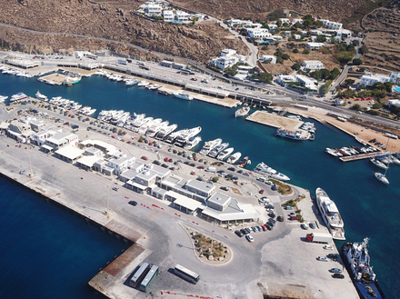Le nouveau port de Mykonos comprend 3 parties, une partie réservée aux navires de croisière et transbordeurs, une partie réservée aux navires de pêche et une aux navires de plaisance et embarcations.
