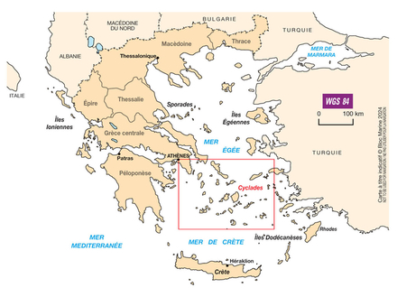 Coordonnées de l’île : latitude : 36°26,90'N / longitude : 25°22,50'E