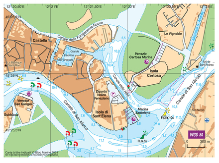 Coordonnées entrée du port : latitude : 45°25,52'N / longitude : 12°12,01'E
