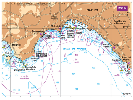 Molo di San Vincenzo (40°49,97' N -14°16,33' E) feu Fl(3)W.15s25m22M entrée de Naples