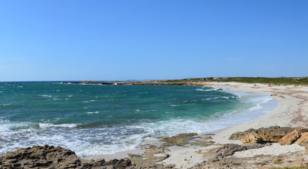 Cette magnifique plage est située au pied de grandes falaises de calcaire blanches, où des grottes naturelles se sont formées. Elle est très secrète car elle bien plus facile d’accès par la mer que par la terre. Elle a servi de lieu de tournage pour le film « Vers un destin insolite » avec Mariangela Melato en 1974.