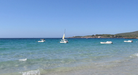 Située au Sud-est de l’île, cette plage est tellement idyllique qu’elle a servi à de nombreux tournages publicitaires. Elle est surnommé plage des deux mers car elle est enfermée entre la mer Méditerranée et l’étang salé de Notteri.