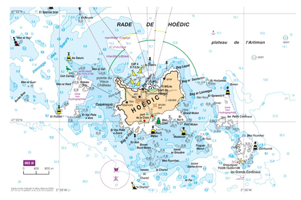 L’île de Hoëdic ferme le sud de la baie de Quiberon. Elle est située à 3 M au sud-est de l’île de Houat dont elle est séparée par le passage des Soeurs. Sur la côte Nord, on trouve le port d’Argol. Il est équipé d’un bassin à flot avec un ponton (72 m, 1,70 à 2 m d’eau) avec catways et de 4 tonnes d’amarrage. Pour les bateaux amarrés sur tonnes, pour les annexes, un ponton est à leur disposition. Attention, pendant la saison estivale, les places avec catways et pontons sont très recherchées. Vous pouvez toutefois rester en attente dans l’avant-port (1 à 2 m d’eau). Si votre bateau peut s’échouer, vous trouverez au sud de l’île le vieux port (port de la Croix), relativement bien abrité sauf par vent de nord-est à Sud-ouest où le ressac peut être désagréable Sur les côtes sud et ouest, pratiquement pas de possibilités de mouillage même par beau temps.