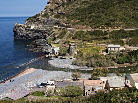 En empruntant l’inévitable et champêtre D80 à partir de Patrimonio, il vous faudra parcourir 10 kilomètres avant d’apercevoir le panneau indiquant l’entrée du hameau à gauche, par un lacet en descente (attention, la marine est si petite et la vallée si encaissée qu’il est bien possible, si vous n’êtes pas attentif aux panneaux, qu’elle vous échappe tout simplement. Si vous arrivez à Nonza : rebroussez chemin de quatre kilomètres !). La petite route, étroite et sinueuse, serpente entre les maisons, croise le pont au-dessus du ruisseau ; une dernière épingle à cheveux et vous voilà arrivés. En pleine saison, le parking d'une dizaine de places sature rapidement. La paillotte en front de mer permet de déjeuner ou de boire un verre. D’octobre à mai, il y a toujours des places de parking mais moins de possibilités pour se restaurer.