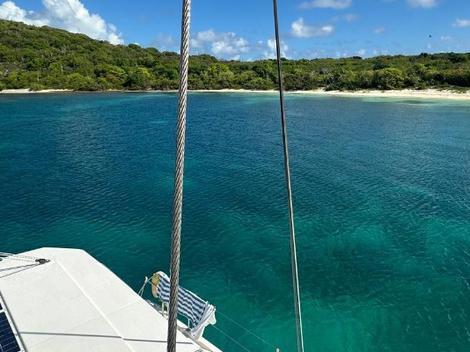 Le départ de votre croisière, tout comme celle de Charlie, se fera à Nelson's Dockyard à English Harbour, port principal de l'île situé au sud. Une fois l'avitaillement terminé, il est temps de prendre la mer. Premier stop : le mouillage de Ricketts Harbour à l'est d'Antigua. "Une fois les courses terminées et chargées, nous sommes partis de English Harbour à la mi-journée. En moins de 2h nous sommes arrivés notre premier mouillage de Ricketts Harbour sur la côte sud de Green Island, un mouillage réellement paradisiaque avec deux petites plages de sable blanc et des tortues de mer qui nagent et plongent autour du bateau. Le ton était donné !" raconte le skipper. Toujours à Green Island, direction la côte Nord dans la baie de Nonsuch, non sans avoir mis à l'eau la planche de paddle avant de reprendre la mer. Avec une courte navigation, il est temps de profiter du vent et ce sport abrité de la barrière de corail, très réputé pour la pratique du wingfoil. Si vous êtes plutôt team baignade, alors la petite plage de la pointe nord de l'île est faite pour vous. La nuit se passera à l'abri sur la côte Est.
