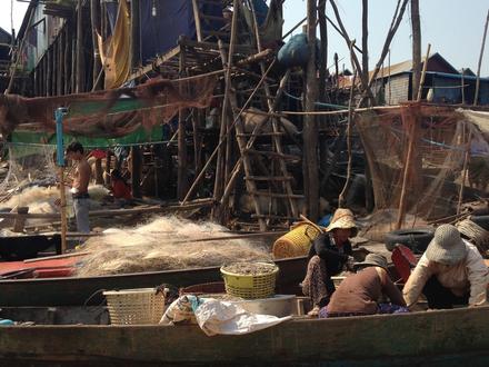 Pendant la mousson, les eaux du lac montent de manière spectaculaire. Les 10 mètres qui séparent les habitations du sol sec en saison sèche se réduisent parfois à 5 mètres seulement. Mais la structure des maisons permet d’évacuer facilement l’eau et de s’adapter aux inondations récurrentes.