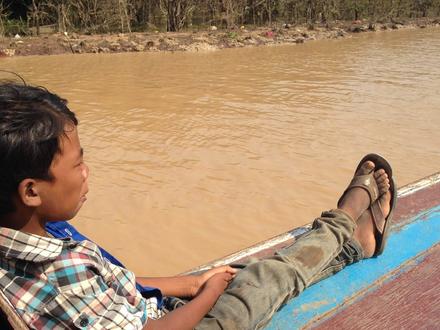 Le trajet depuis Siem Reap est déjà une immersion. Après une cinquantaine de minutes sur une route d’abord asphaltée, puis de plus en plus chaotique, la piste ocre mène aux abords du village. Sous un soleil accablant, des cyclistes serpentent entre les rizières aux reflets émeraude, contrastant avec la terre rouge de la sécheresse. Puis, le fleuve apparaît, artère vitale du village.