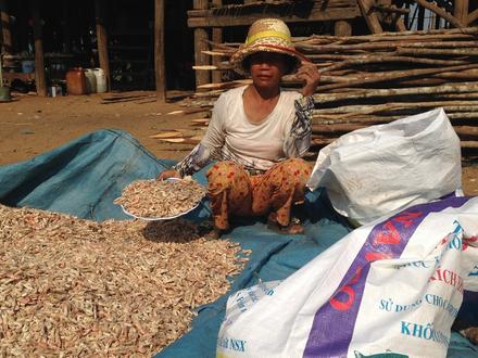 Sur la place principale du village, les femmes jouent un rôle clé : elles étalent les crevettes roses sur de larges bâches pour les sécher au soleil. Pas de réfrigération possible dans ce monde sans électricité ni eau courante, ici, le séchage reste la meilleure solution de conservation. Puis, dans un ballet bien rôdé, elles remplissent de grands sacs en toile de riz, prêts à être vendus sur les marchés alentour.