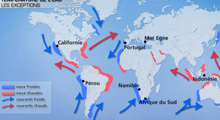 En revanche, il existe des zones océaniques marquées par une grande douceur de l’eau tout au long de l’année : la côte ouest du Mexique, la côte du nord-est brésilien, la mer Rouge, le Golfe d’Aden, ainsi que toute la zone indonésienne. Ces régions sont marquées par des vents réguliers soufflant du large, ce qui maintient les eaux chaudes sur les plages. En Indonésie ou aux Bahamas, la température de l’eau est proche de 25 à 28°C sans variation au fil des mois. Ce qui est bien différent de la Méditerranée où l’eau grimpe jusqu’à 28°C en été mais chute à 14°C en hiver. Toutefois, le prix à payer pour bénéficier d’une eau constamment chaude est un climat particulièrement humide et instable, avec de fréquentes pluies orageuses.