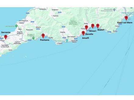 Sorrente, située à l’entrée de la péninsule, ne fait pas à proprement parler partie de la côte amalfitaine, mais mérite amplement sa place dans cet itinéraire. Plus grande que ses voisines, elle a su conserver une ambiance de village tout en offrant une véritable vie locale. Ses ruelles animées, ses citronneraies, ses trattorias et ses vues spectaculaires sur le golfe de Naples en font une étape vivante et accueillante. Depuis la Villa Comunale, on peut admirer le Vésuve dans un cadre saisissant. La ville est également le point d'accès au parc marin protégé de Punta Campanella, un site exceptionnel pour la plongée. Les plongeurs y croisent des anémones, des petits mérous et parfois même des hippocampes dans une mer souvent d'une clarté remarquable. Le kayak y est aussi très pratiqué, permettant d'explorer la côte de façon douce et silencieuse.