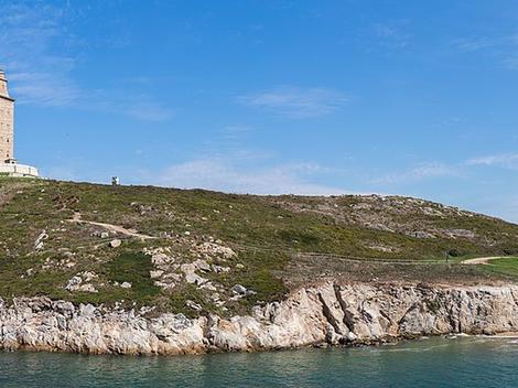 Puis voici les hautes falaises du cap Ortegal nimbées de brume et la Tour d'Hercule, immense amer datant de la présence romaine. C'est le plus ancien phare du monde, inscrit par l'Unesco au Patrimoine mondial de l'humanité. Construit au début du IIe siècle en forme de croix sur trois niveaux, il s'élève toujours à 55 mètres au-dessus de la baie de La Corogne.